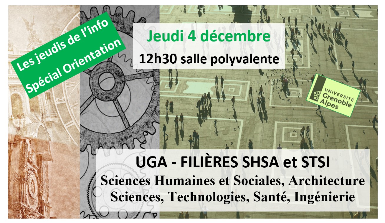 Certains midis de 12h30 à 13h30 en général en salle polyvalente (ou autre salle/horaire si indiqué), vous découvrez plus d'infos. Cette année, notez bien les prochaines dates (les terminales sont libérés de cours s'ils ont besoin, mais pas les secondes ni les 1ères) :