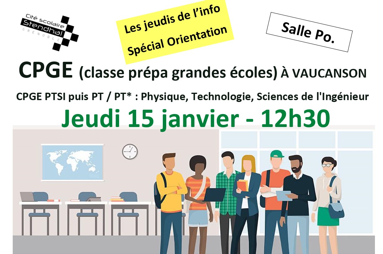 Certains jeudis de 12h30 à 13h30 en général en salle polyvalente (ou autre salle/horaire si indiqué), vous découvrez plus d'infos. Cette année, notez bien les prochaines dates (les terminales sont libérés de cours s'ils ont besoin, mais pas les secondes ni les 1ères) :